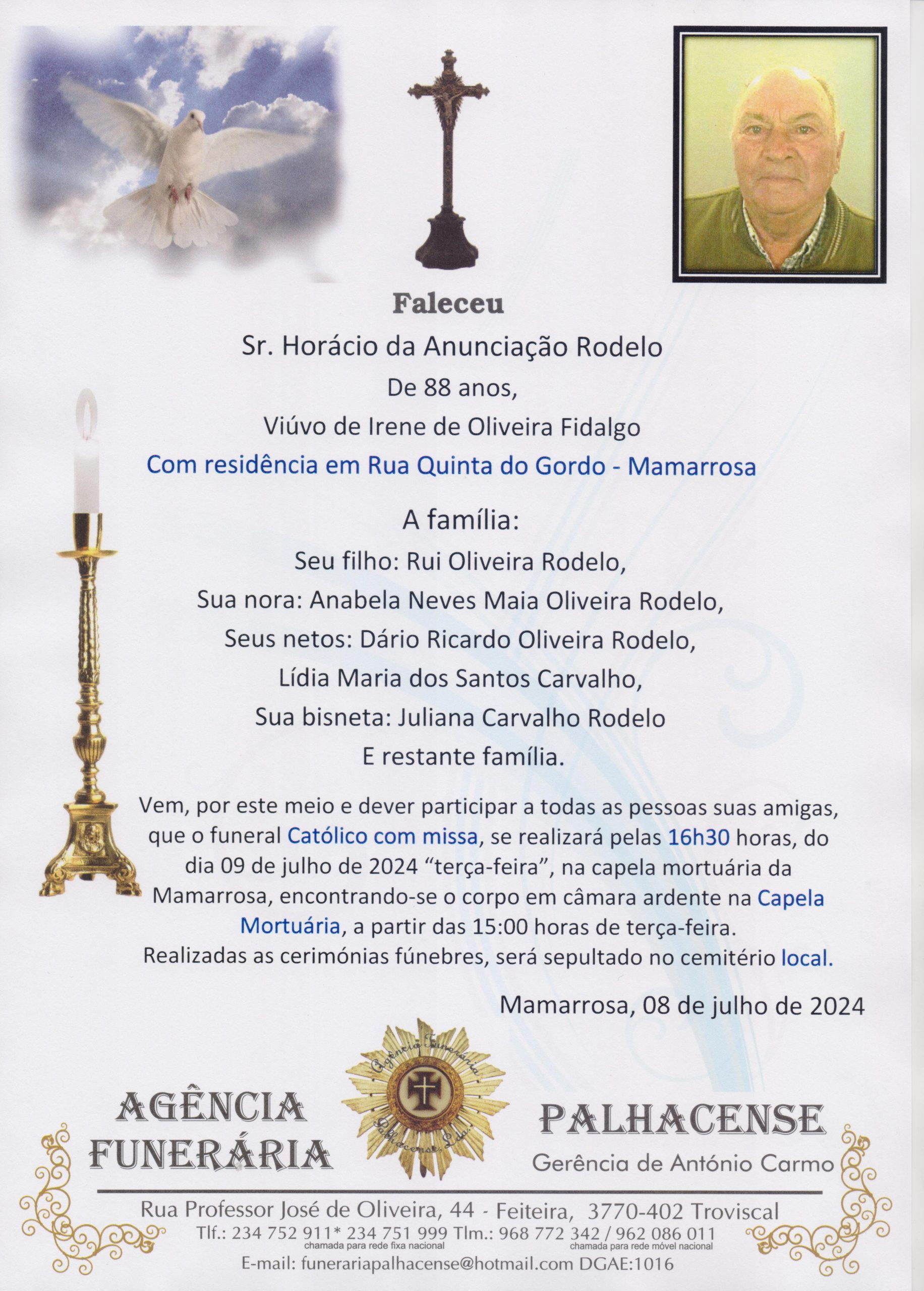 Capela Mortuária de Mamarrosa, a partir das 15h00 do dia 09/07/2024 (terça-feira)