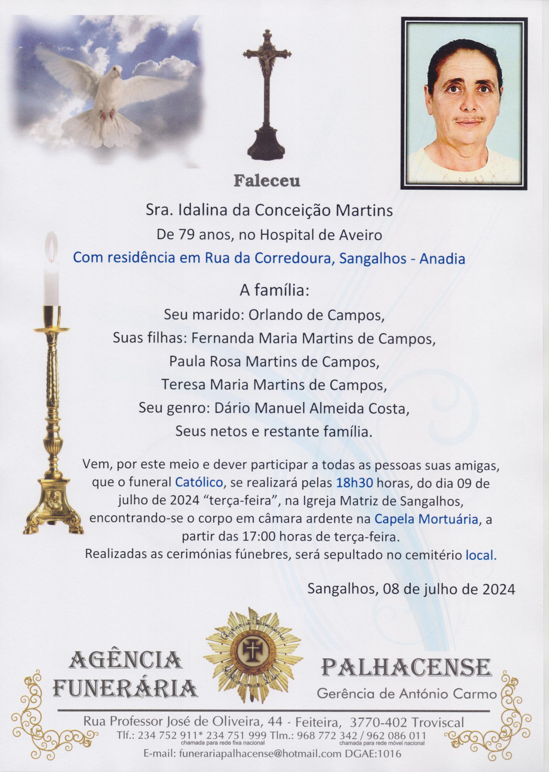 Capela Mortuária de Sangalhos, a partis das 17h00 do dia 09/07/2024 (terça-feira)