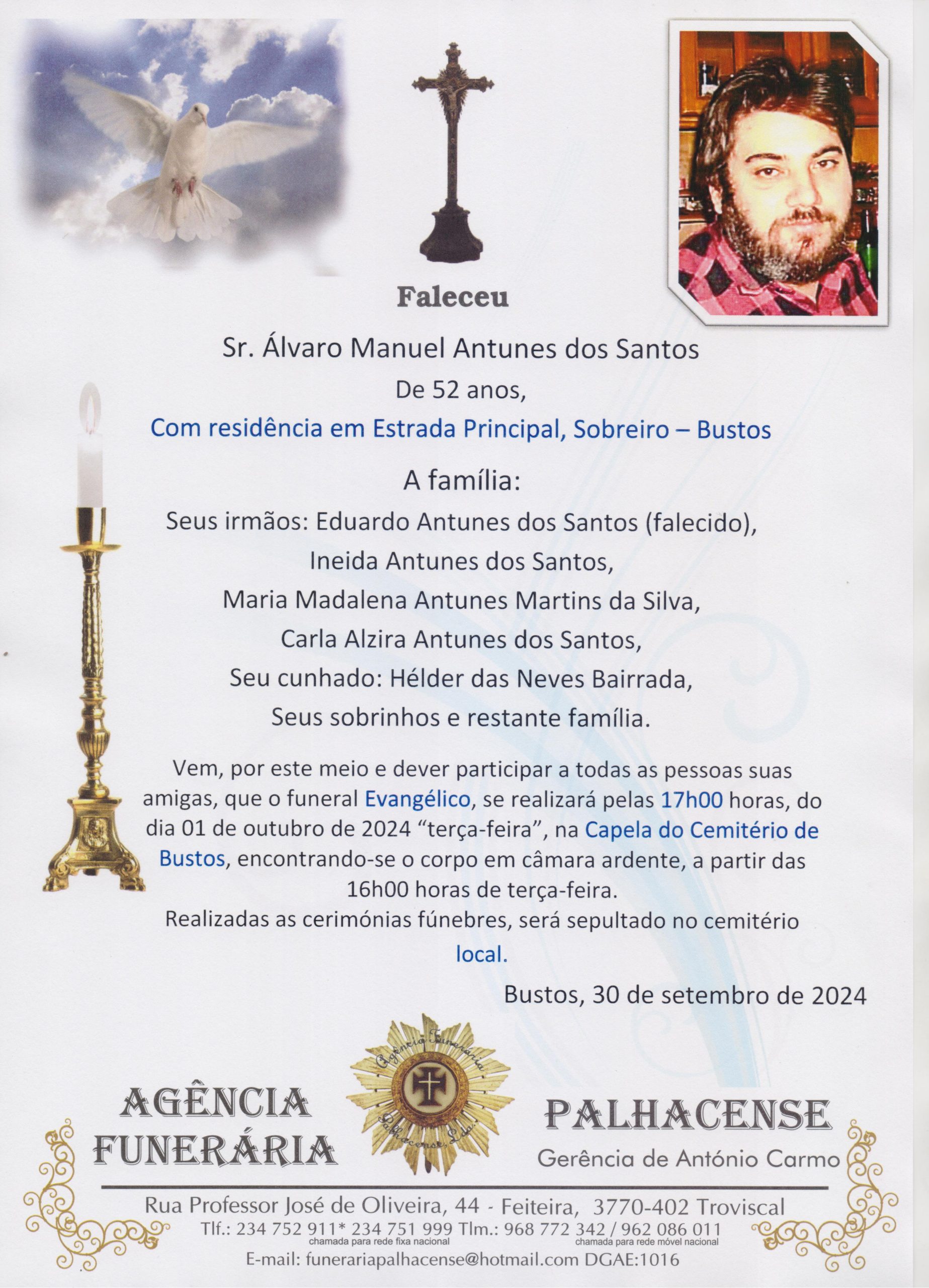 Na Capela do Cemitério de Bustos, a partir das 16h00 do dia 01/10/2024 (terça-feira)