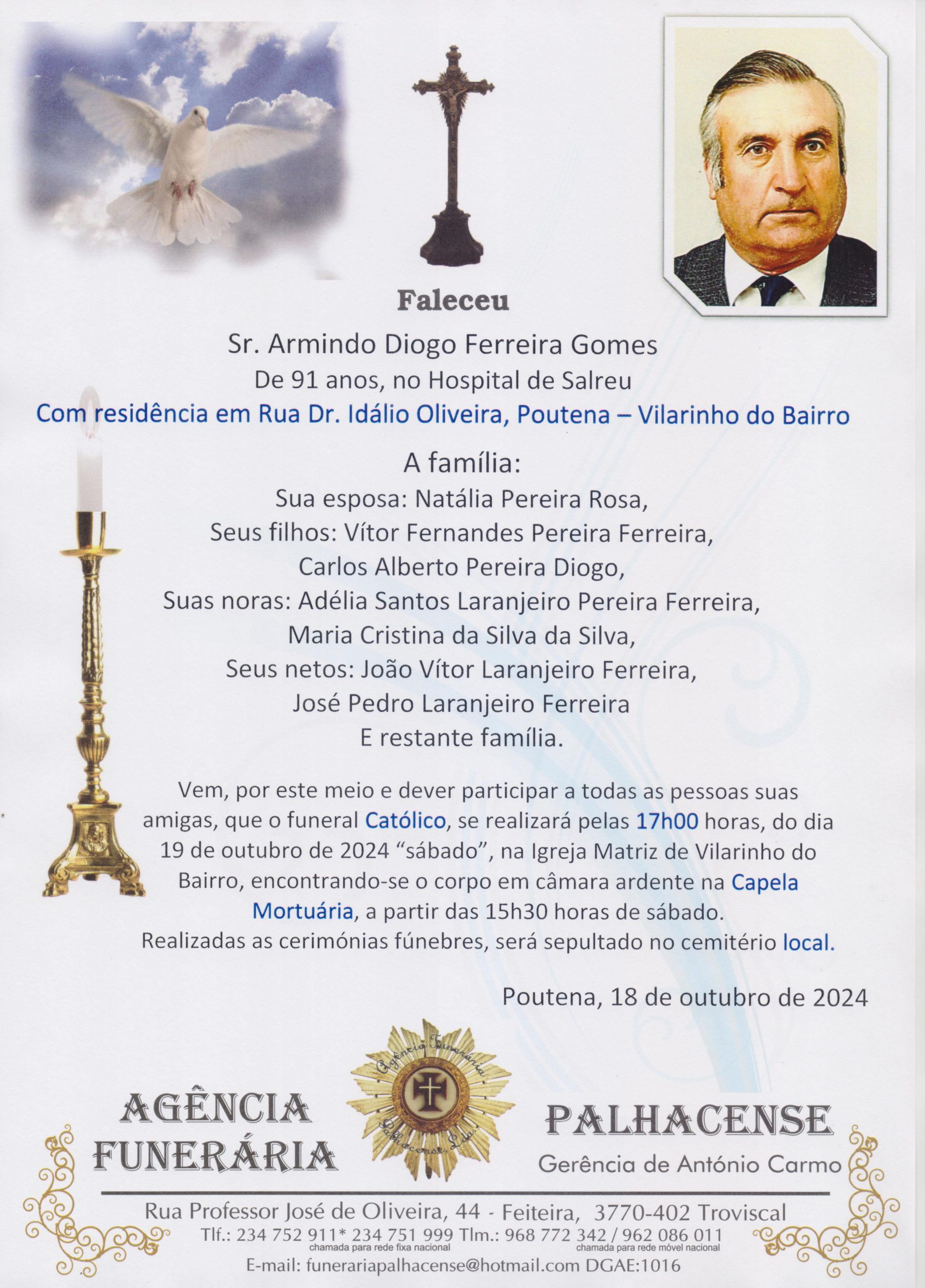 Na Capela Mortuária de Vilarinho do Bairro, a partir das 15h30 do dia 18/10/2024 (sábado)