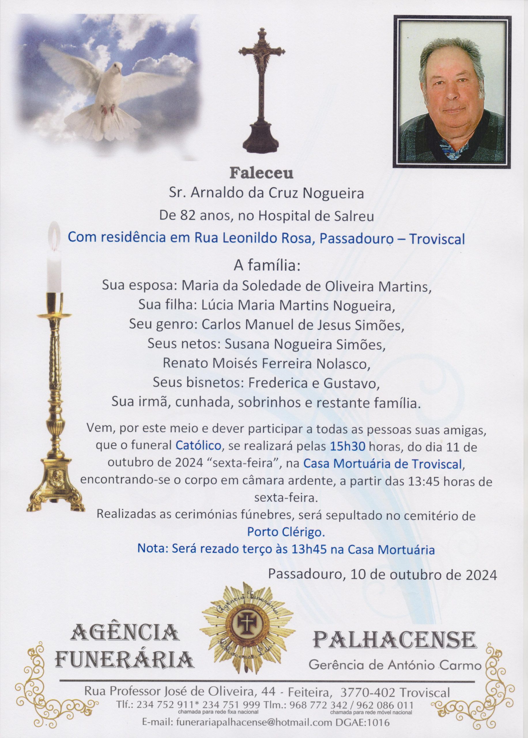 Na Casa Mortuária de Troviscal, a partir das 13h45 do dia 11/10/2024 (sexta-feira)
