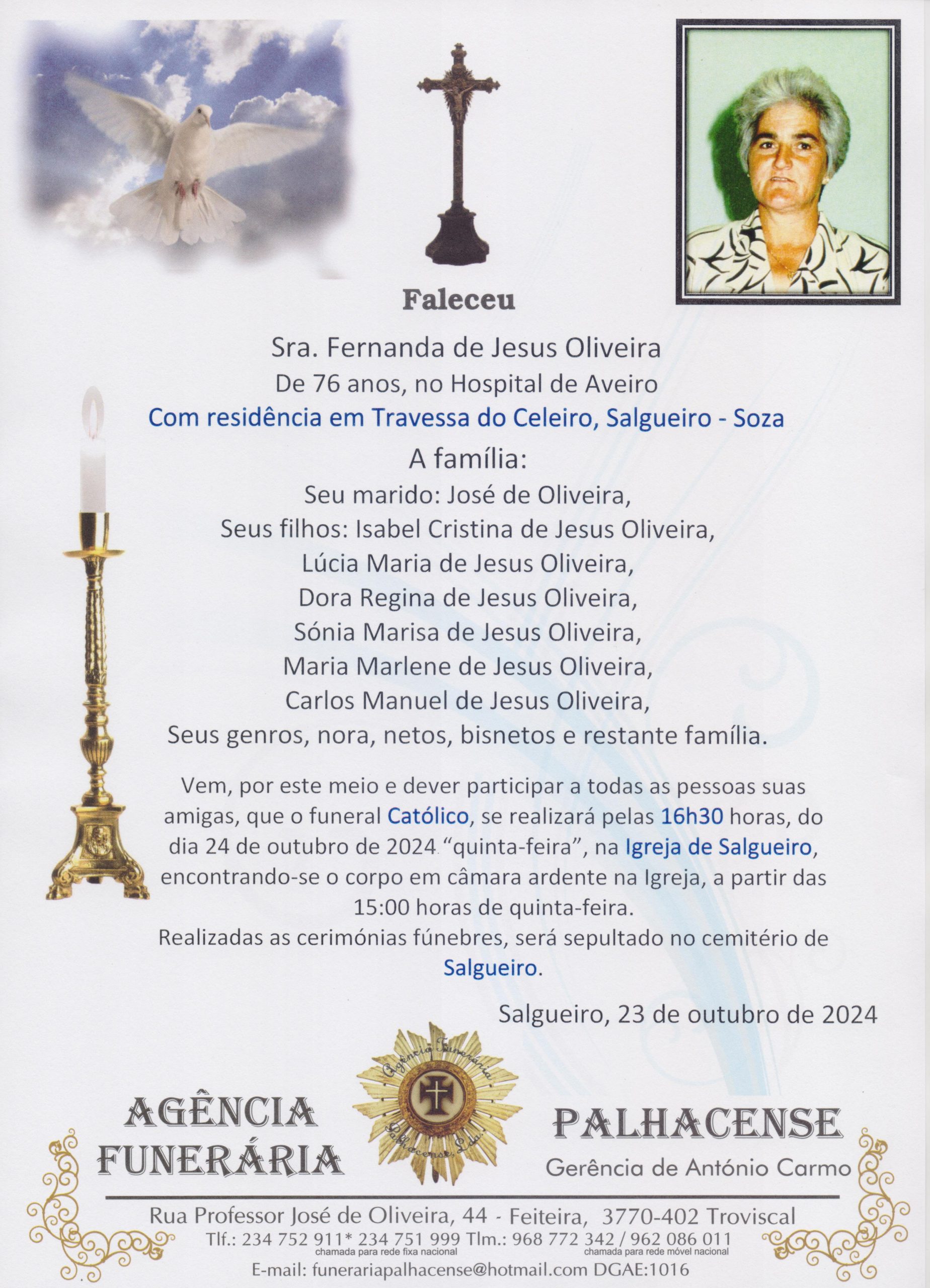 Esposa de José de Oliveira Mãe de Isabel Cristina de Jesus Oliveira, Lúcia Maria de Jesus Oliveira, Dora Regina de Jesus Oliveira, Sónia Marisa de Jesus Oliveira, Maria Marlene de Jesus Oliveira e Carlos Manuel de Jesus Oliveira
