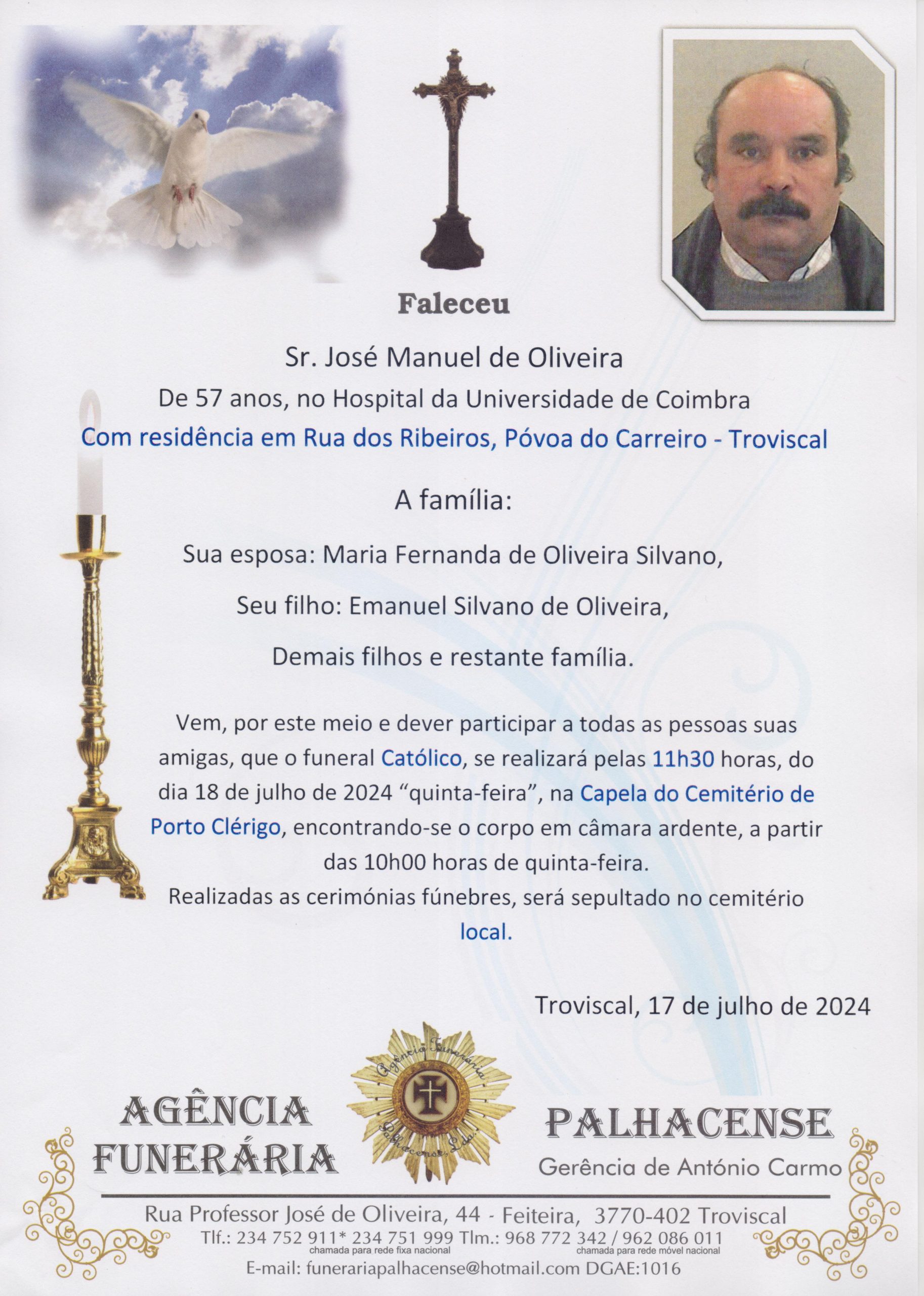 Católico, na Capela do Cemitério de porto Clérigo, às 11h30 do dia 18/07/2024 (quinta-feira)