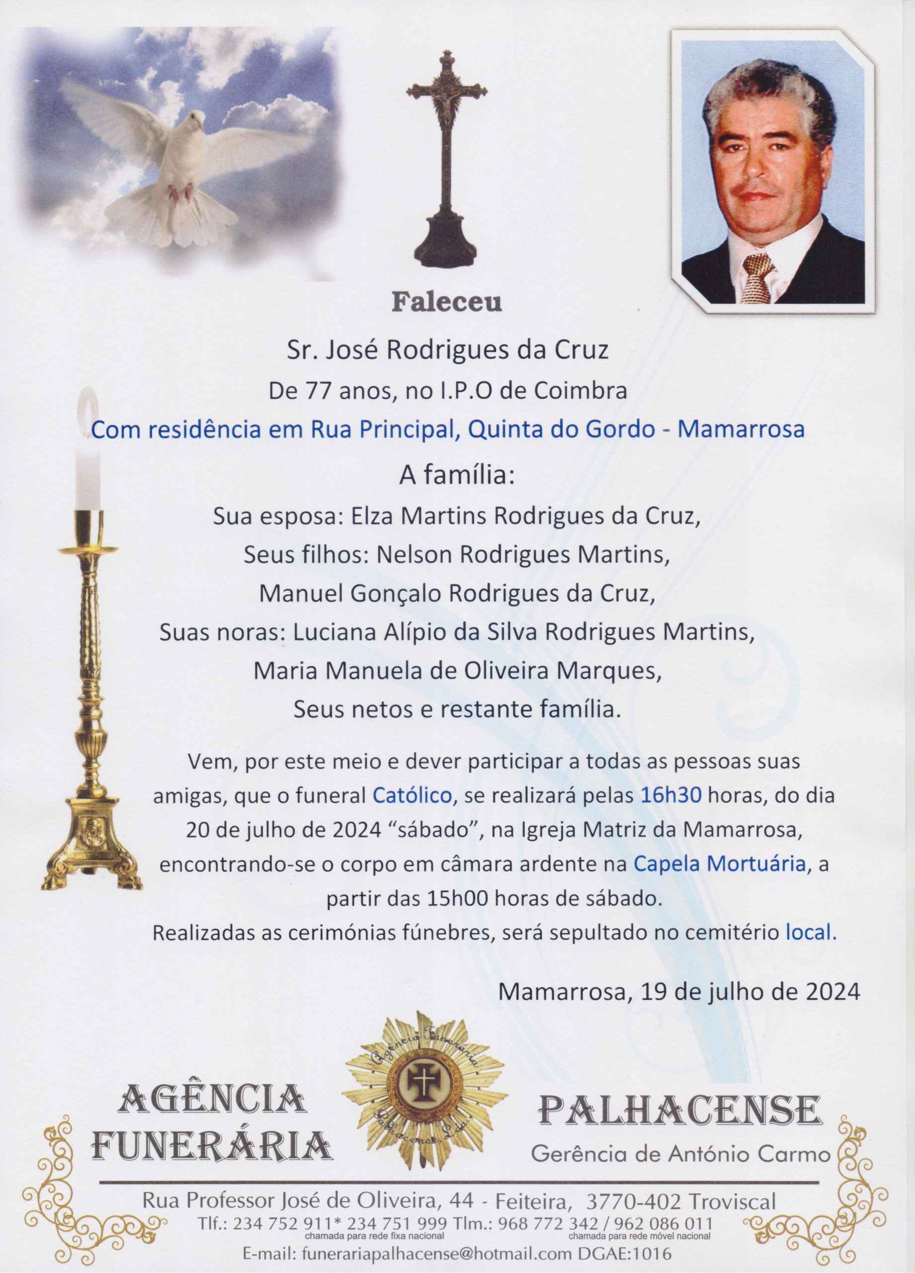 Na Capela Mortuária de Mamarrosa, a partir das 15h00 do dia 20/07/2024 (sábado)